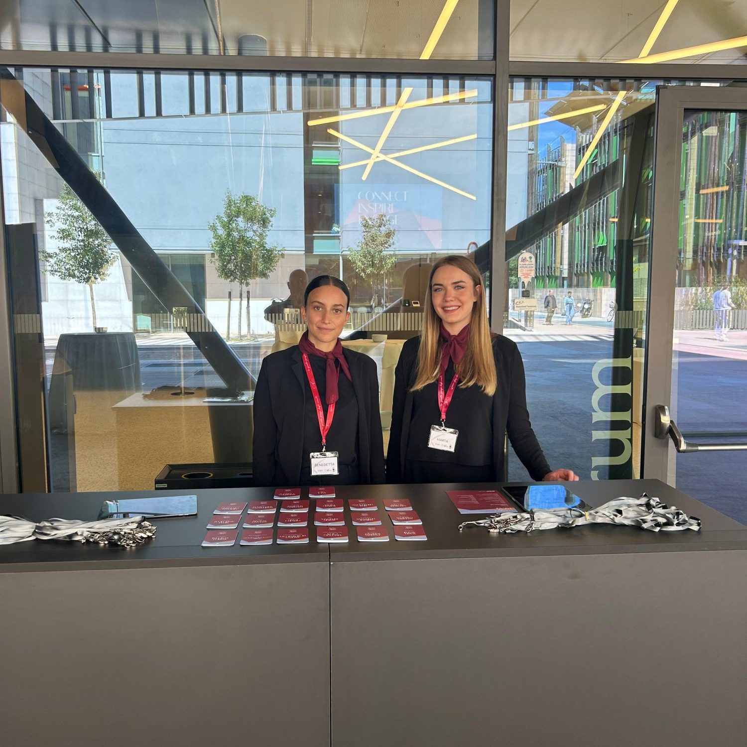Primo contatto diretto con i clienti e il pubblico, hostess e steward sono accuratamente selezionati e formati per rispondere con gentilezza, cortesia e decisione a tutte le vostre esigenze.