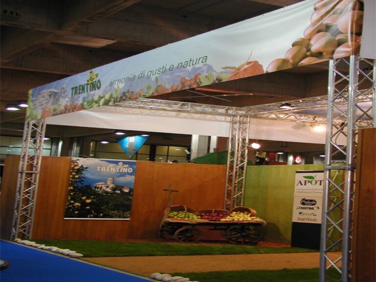 Progettazione ed allestimento stand per: Assessorato allÂ’Agricoltura Provincia Autonoma di Trento, Melinda, La Trentina, ST. Orsola, Consorzio Vivaisti Frutticoli Trentini, Istituto Agrario San Michele, Istituto sperimentale per la Frutticoltura.