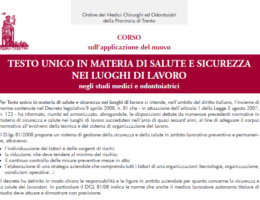 Corso sull’applicazione del “Testo unico in materia di salute e sicurezza nei luoghi di lavoro”, negli studi medici e odontoiatrici
