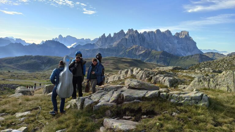 Accoglienza degli spettatori dei Suoni delle Dolomiti, un appuntamento fisso per gli amanti della musica e della natura, dove talentuosi professionisti si esibiscono in diversi luoghi nel cuore delle Dolomiti del Trentino.